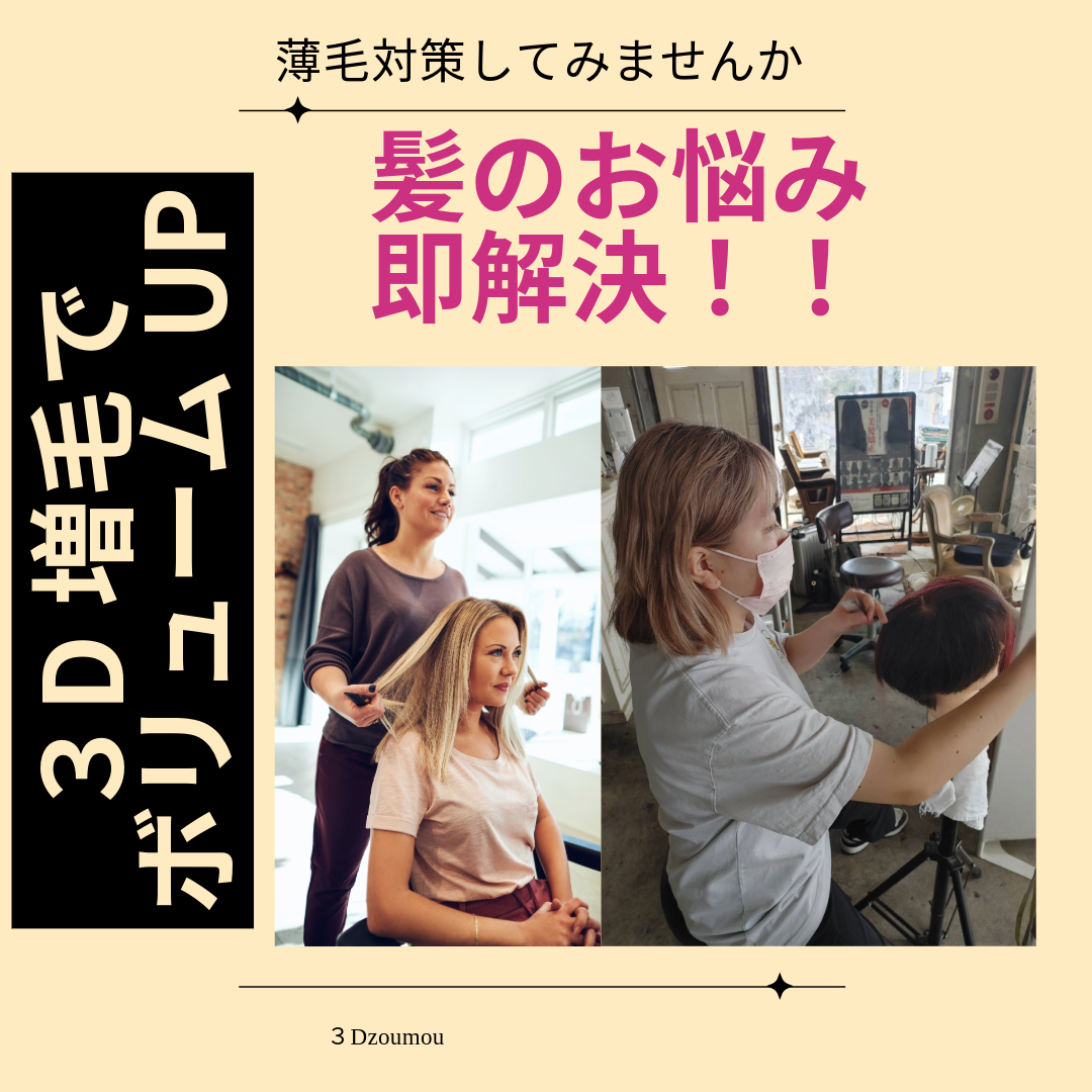 薄毛や脱毛のための3D増毛エクステと捉えるだけではなく、増毛エクステをお客様の求めるヘアスタイルのデザインへのツールとして活用していくことで、