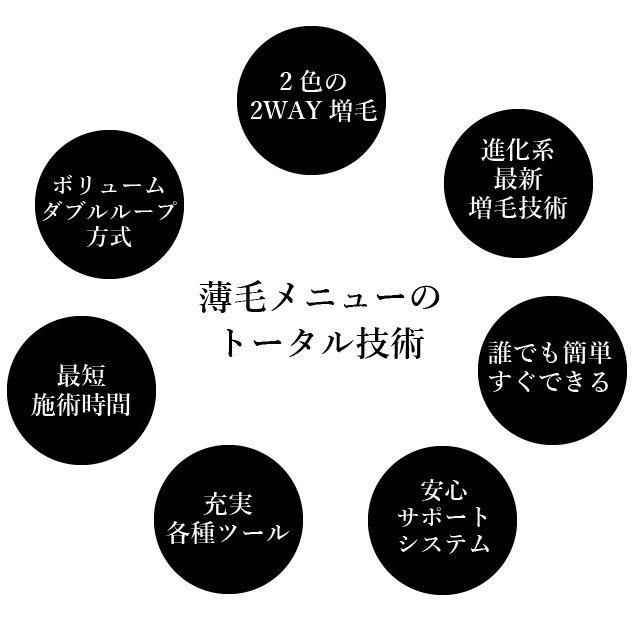 新しい収益源増毛エクステ3D増毛をメニューに加えることで、新たな収益を得ることができます。お客様の悩みを解決するサービスを提供することで、リピート客を増やすチャンスです。 |