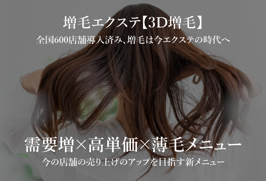 新たなビジネスチャンスを見逃していませんか?私たちの提供する「エクステ増毛3D増毛」は、今、美容業界で注目を集めているトレンドです。お客様の髪にボリュームと美しさを加え、若々しい印象を与えることができます。この技術をメニューに追加することで、集客力を高めるだけでなく、リピート率の向上にも寄与します。
